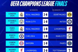 欧冠官方晒出近11年的决赛比分,提问:你注意到了什么?