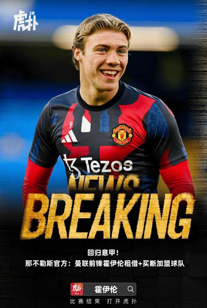 那不勒斯官方宣布,曼联前锋霍伊伦租借加盟球队。